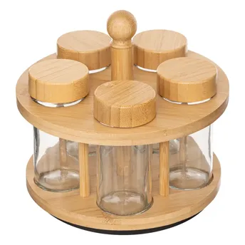 طقم برطمانات مع حامل خيزران دوار 5فايف كوزي سبايس (القطر 17 × 17.5 سم، 5 برطمانات)