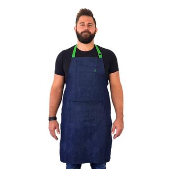 • مريلة الدنيم سهلة التنظيف ويمكن غسلها في الغسالة
