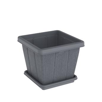 اصيص نباتات بلاستيكي مربع مع صينية من كوزموبلاست سيدارجرين (20 لتر)