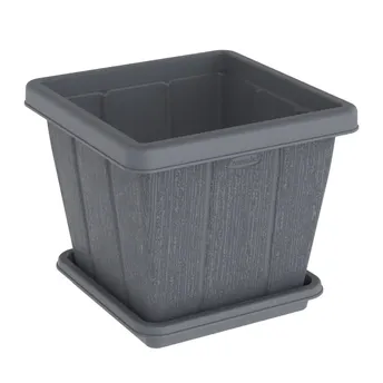 - أصيص نباتات مربع مع صينية كوزموبلاست سيدرجرين (رمادي، 20 لتر)