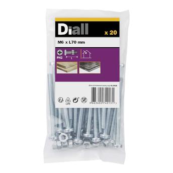 براغي وصواميل M6 للآلات برأس مسطح مشقوق من الفولاذ الكربوني ديال (70 ملم، 20 قطعة)
