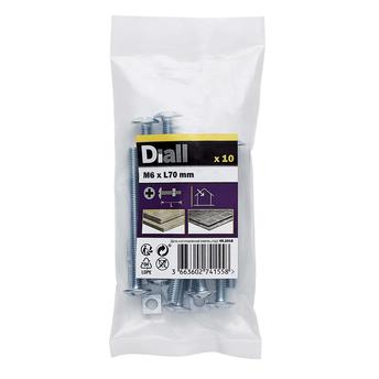 مجموعة براغي وصواميل مربعة لأعمال التسقيف فولاذ كربوني مطلي بالزنك ديال (M6 × 70 مم، 10 قطع)