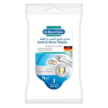 - مناديل دكتور بيكمان الذهبية والفضية الجاهزة للاستخدام تزيل الأكسدة بكفاءة وتمنع التشويه في المستقبل، وتضمن لمعانًا رائعًا يدوم طويلًا.