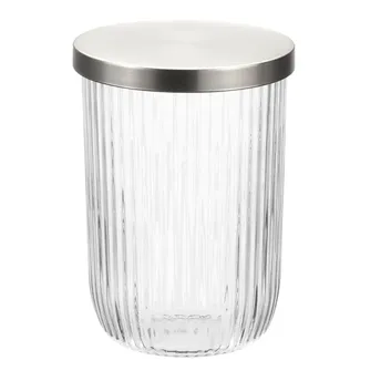 - علبة زجاجية مزخرفة مع غطاء انتر ديزاين (8.6 × 8.6 × 12 سم) يعمل هذا المنتج على تبسيط أسطح العمل وتبسيط الصباحات المزدحمة باستخدام علبة الزجاج الصغيرة المزخرفة من iDesign حيث تخلق الأشرطة الرأسية المضلعة أسلوبًا مميزًا، كما تم الانتهاء من هذا المنتج بغطاء من النيكل المصقول، مما يكمل المظهر مع توفير حل تخزين ذكي لإكسسوارات الحمام الأكثر استخدامًا.