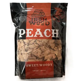 - رقائق خشب خوخ آيرون وود (350 جرام) يُضفي نكهة مدخنة رائعة على الدواجن والمأكولات البحرية.