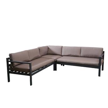 طقم كنب حديقة من المعدن متساوية القياس تتسع ل 5 مقاعد على شكل حرف L حول الإمارات