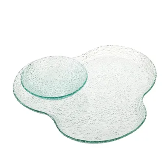 - طقم صينية تقديم زجاجية مع وعاء لا ميزون تتميز بلوحة مصنوعة باستخدام عملية ثني ساخنة ذات سطح مطروق.