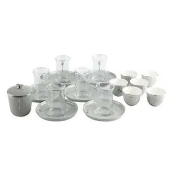 Otantik Liqaa Tea & Arabic Coffee Cup Set (Grey & Silver, 19 Pc.)