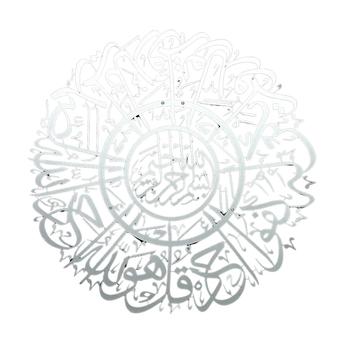 - برواز حائط معدني دائري بكتابة سورة الإخلاص بفن الخط حول الإمارات باللون الفضي ، 70 × 70 سم يضفي مظهرًا زخرفيًا على الجدران.