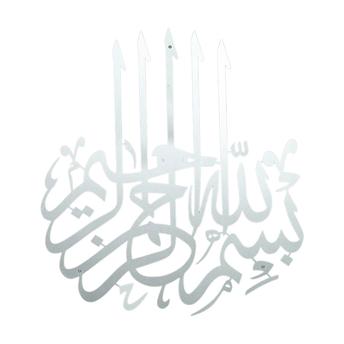 برواز حائط معدني بكتابة البسملة بفن الخط حول الإمارات (فضي ، 70 × 64 سم)