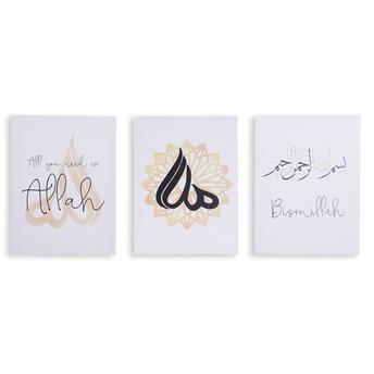 مجموعة 3 لوحات فنية للخط العربي بسم الله من حول الإمارات (30 × 40 سم ، أبيض)