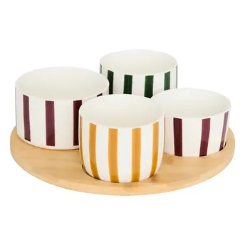 طقم أواني مقبلات مع صينية خيزران وخزف حجري إس جي شيري (4 قطع)