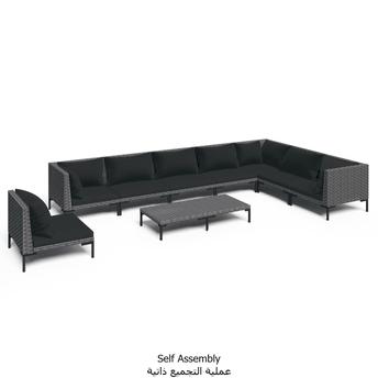 - طقم كنب حديقة لون رمادي غامق من بولي راتان 9 قطع مع وسائد فيدا إكس إل (70 × 70 × 61 سم)