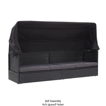 أريكة سرير بولي راتان مع مظلة لون أسود فيدا إكس إل