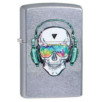 ولاعة زيبو مقاومة للرياح بتصميم جمجمة مرتدية سماعة رأس 29855 (ستريت كروم)