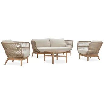 - The Agesta 4-Seater Acacia Wood Outdoor Sofa Set (185 x 81 x 70 cm) is stylish and durable outdoor seating solution featuring FSC-certified acacia wood in a light teak look, aluminum frame with powder coating, and weather-resistant materials.