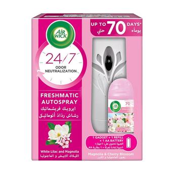 - Enhance your surroundings and treat your senses with the subtle notes of fresh ( Cherry Blossom) fragrance with Air Wick Freshmatic Autospray.