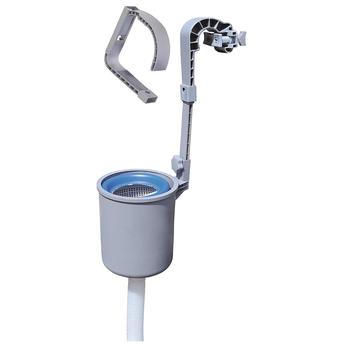 - Puts the little hose, which comes with and attaches to the water skimmer, conveniently close to the inlet, where water is pumped out and cleaned through the external filter pump system