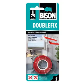- The Bison Extra Strong Double Sided Adhesive Tape mounts and affixes objects permanently.