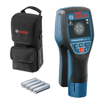 - The Bosch Professional Wall Detector, D-tect 120 (12 cm), measures spots accurately on narrow surfaces.