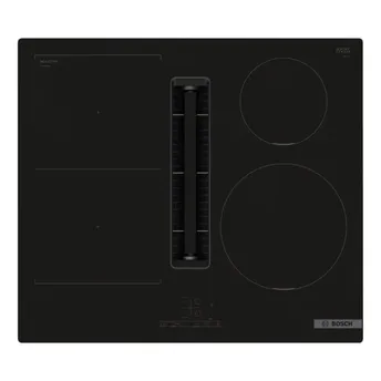 - The Bosch Series 4 Built-In 4-Zone Induction Hob W/Integrated Ventilation System, PVS601B16E (51.2 x 57.2 x 22.7 cm) selects cooking zones and power levels easily with TouchSelect.