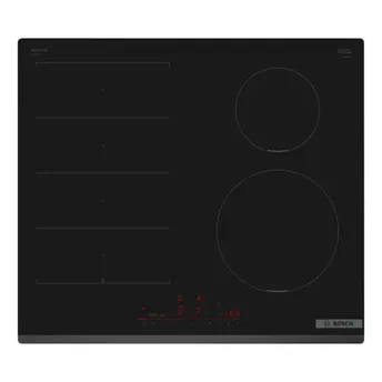 - The Bosch Series 6 Built-In 4-Zone Flex Induction Hob, PIX631HC1E (52.2 x 59.2 x 5.1 cm) combines cooking zones into one large FlexInduction Zone for flexibility.