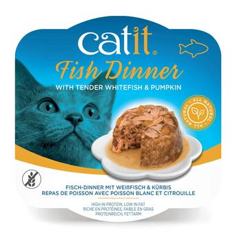 - The gravy rich Catit Fish Dinner is grain-free, low fat and high in protein