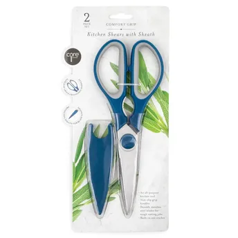 - The Core Home Kitchen Scissors W/Blue Sheath is designed with a non-slip grip and ergonomic handles for enhanced control and ease of use.