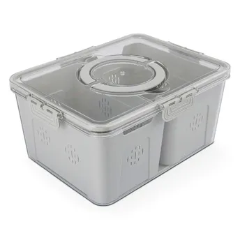 - The Core Kitchen 3-Compartments Draining Container (Moonstone) drains water effectively to keep produce fresh.