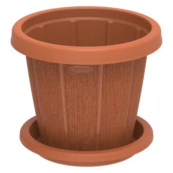 - The Cosmoplast Cedargrain Plant Pot W/Tray (Terra Cotta, 15.2 cm) constructs from high-quality, strong, and durable plastic.