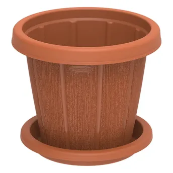 - The Cosmoplast Cedargrain Plant Pot W/Tray (Terra Cotta, 40.6 cm) constructs from high-quality, strong, and durable plastic.