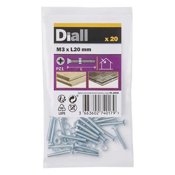 - 1 x Diall M3 Carbon Steel Countersunk Machine Screw & Nut at 20 mm, 20 Pc.