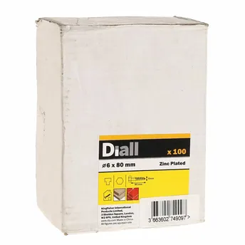 - 1 x Diall Zinc-Plated Carbon Steel Hex Coach Screw Pack at 6 x 80 mm, 100 Pc.