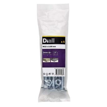 Diall Zinc-Plated Carbon Steel Square Coach Nut & Bolt Pack (M12 x 150 mm, 5 Pc.)
