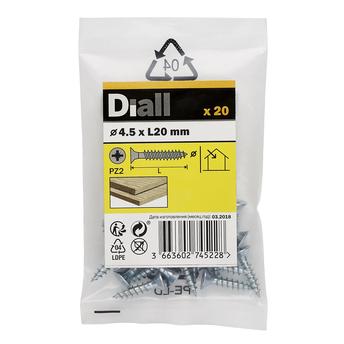 - 1 x Diall Zinc-Plated Carbon Steel Wood Screw Pack at 4.5 x 20 mm, 20 Pc.