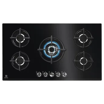- The Electrolux Ultimate Taste 700 Built-In 5-Burner Gas Hob, KGG95376K (51 x 88 x 6.1 cm) delivers precise heat control with StepFlame settings.