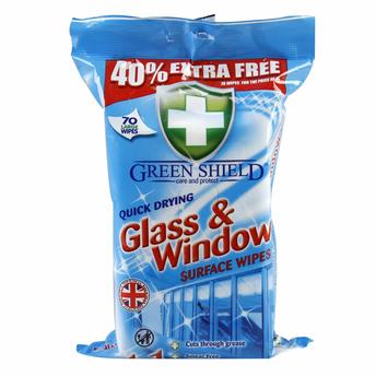 - 1 x Green Shield Glass & Window Surface Wipes Pack, 70 Pc.