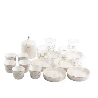 - The Jiwar Tea & Coffee Set (19 Pc., Beige & Silver) offers timeless design and practicality for serving tea and Arabic coffee