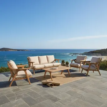 - Features: Lagos 7-Seater Acacia Wood Sofa Set made from 100% FSC-certified acacia wood with galvanized steel hardware and olefin fabric, providing water resistance, strength, and sustainable style for outdoor living.