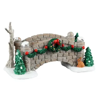 - The Lemax Christmas Footbridge Festive Decor (Multicolor) features charming footbridge adorned with garlands and snow, complete with a playful rabbit for a magical winter scene.