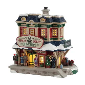 - The Lemax Holly Jolly Junction Festive Decor W/Adaptor (Multicolor, 100 mAh) features festive train station from Caddington Village featuring twinkling lights, colorful suitcases, and holiday cheer.