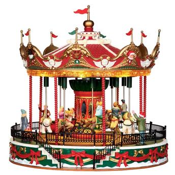 - This tabletop accessory has the Lemax’s Sights & Sounds feature with detailed miniature carousel that revolves and animal rides that move in up-and-down motion all made from premium polyresin, this tabletop adds extra flare for your Christmas village décor
