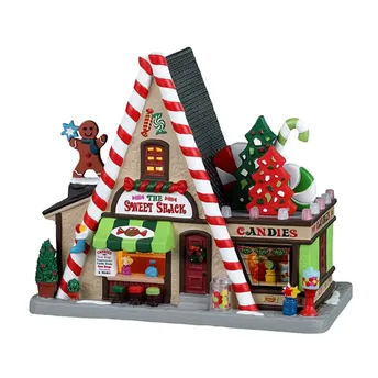 - The Lemax The Sweet Shack Festive Decor W/Adaptor (Multicolor, 100 mAh) features a charming shop decorated with gumdrops, cookies, and gingerbread men.