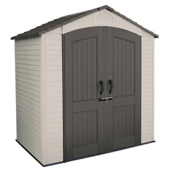 - The Lifetime Outdoor Storage Shed (215 x 77 x 58 cm) built with double-wall, steel-reinforced panels and UV-protected High-Density Polyethylene (HDPE) for impact resistance and long-lasting performance.