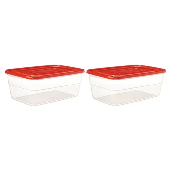 - The storage set is designed with a red lid and a transparent body