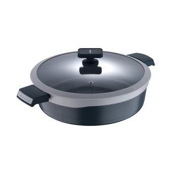 - Masterpro Gastro Non-Stick Cast Aluminum Pan with Glass Lid lets you make soups, stews, roasts, and a variety of sauces and curries for the entire family
