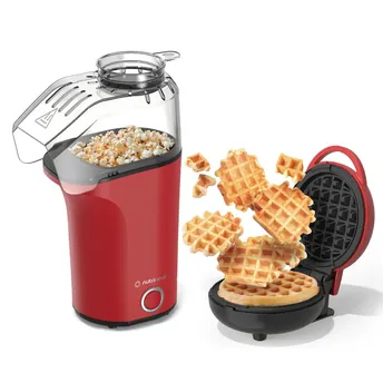 Nutricook Popcorn Maker, PM150R & Mini Waffle Maker, WM100R Bundle