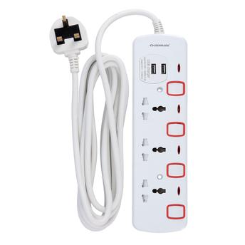 - 1 x Olsenmark 4-Socket Extension Board W/2 USB Ports, OMES1730 at 4 m