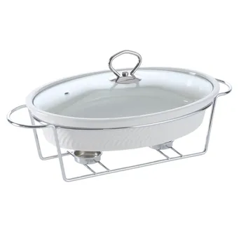 - 1 x Orchid Ceramic Oval Casserole W/Candle Stand at 30.48 cm, White