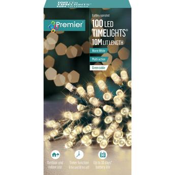 - 1 x Premier 100 LED TimeLights Warm White Battery Operated String Lights at 10 m